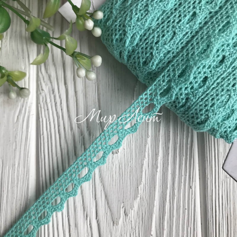 Кружево вязаное (D03401), мятное, 11 мм, рулон 45 м