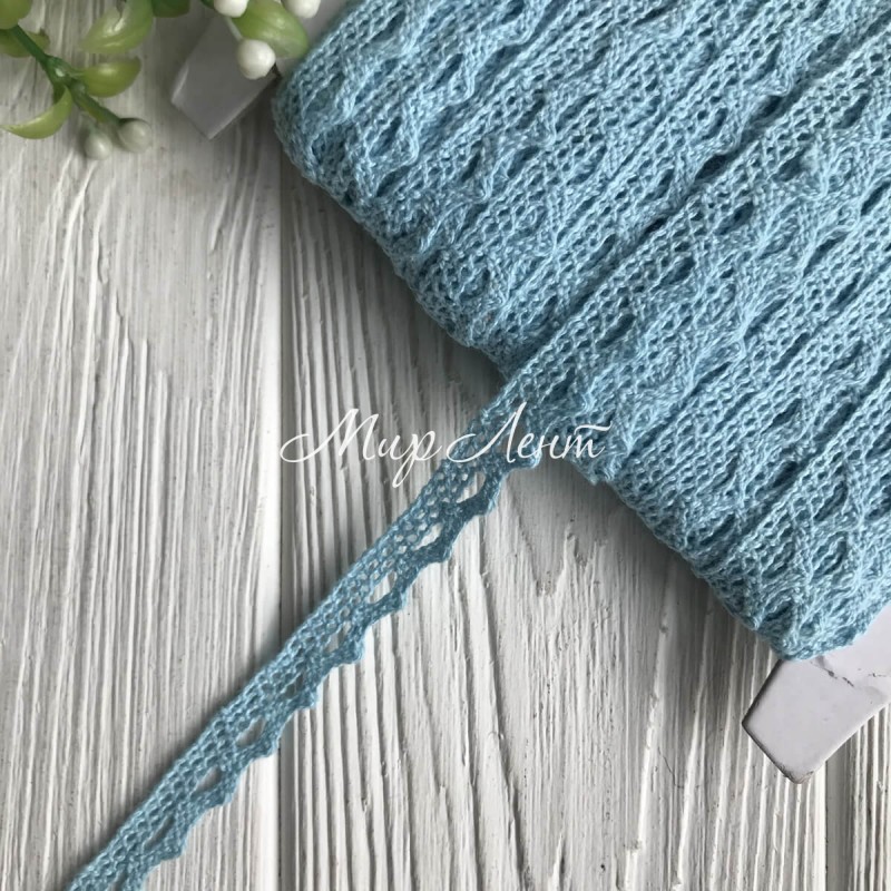 Кружево вязаное (D03401), голубое, 11 мм, рулон 45 м