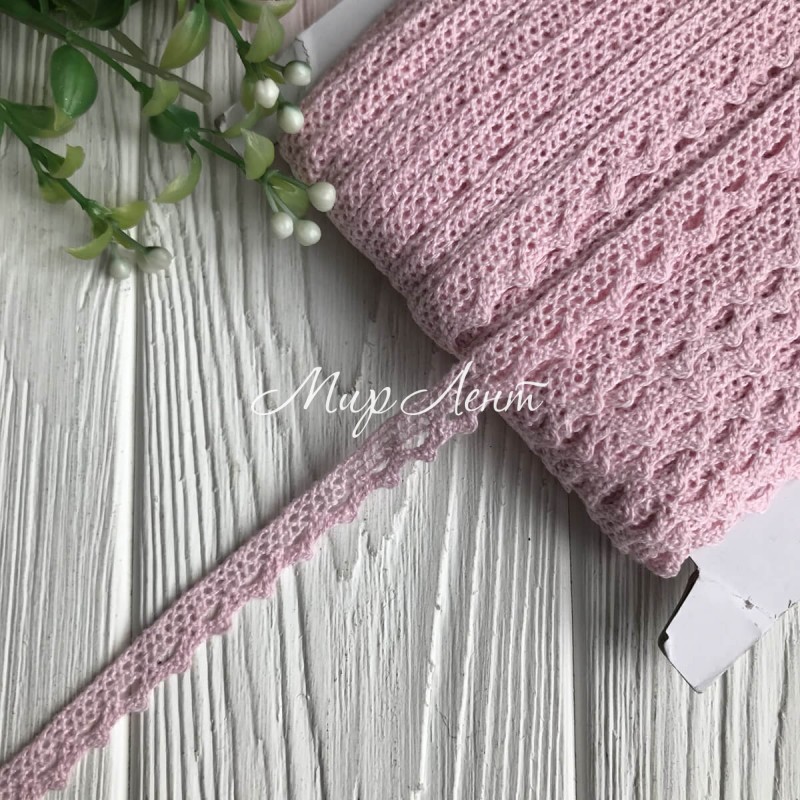 Кружево вязаное (D03401), светло-розовое, 11 мм, рулон 45 м
