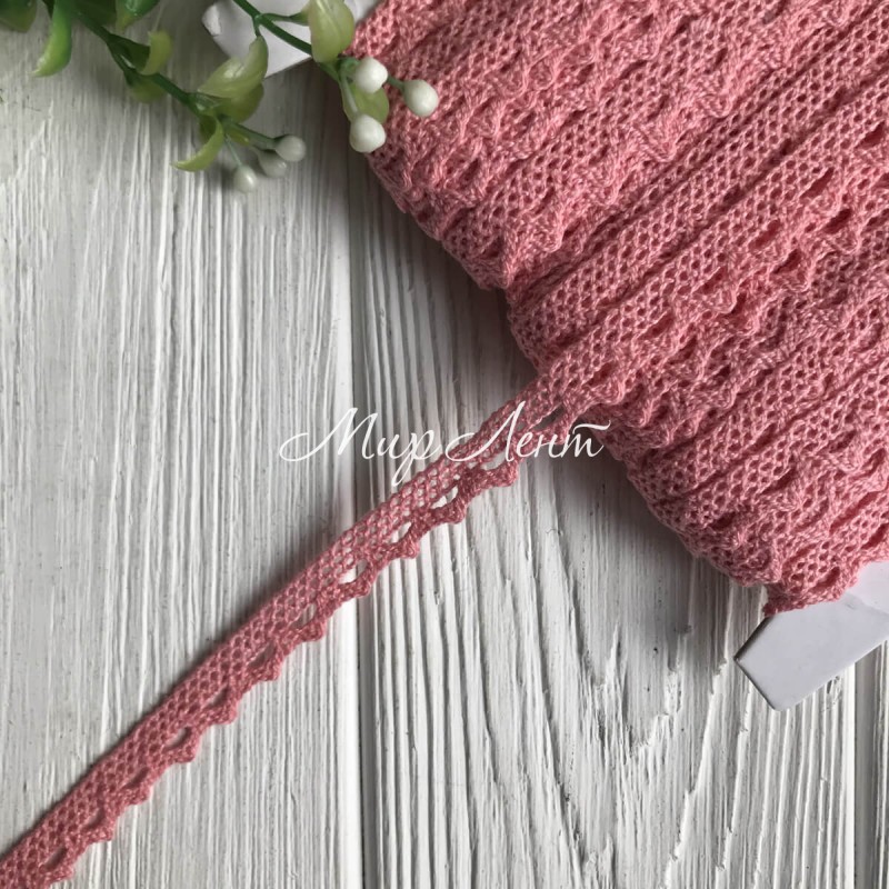 Кружево вязаное (D03401), лососевое, 11 мм, рулон 45 м