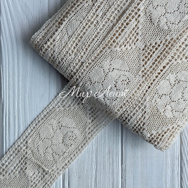 Кружево вязаное (6361-4033A), молочное, 10 см, рулон 23 м