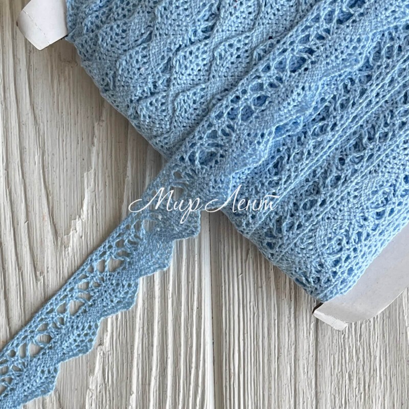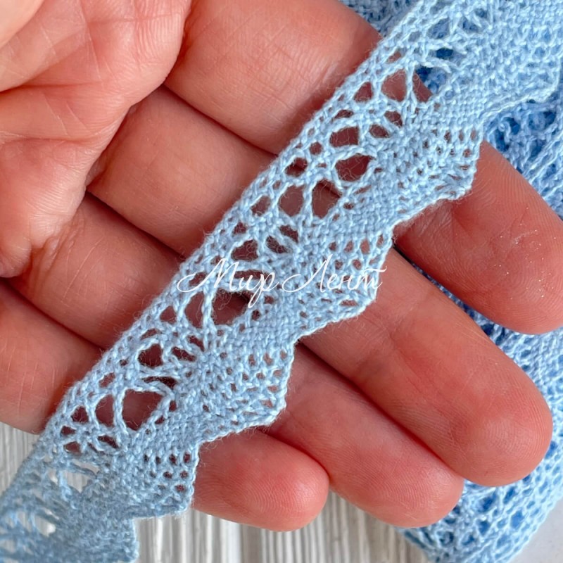 Кружево вязаное Айрис (D03602), 2 см, голубое, рулон 45 м