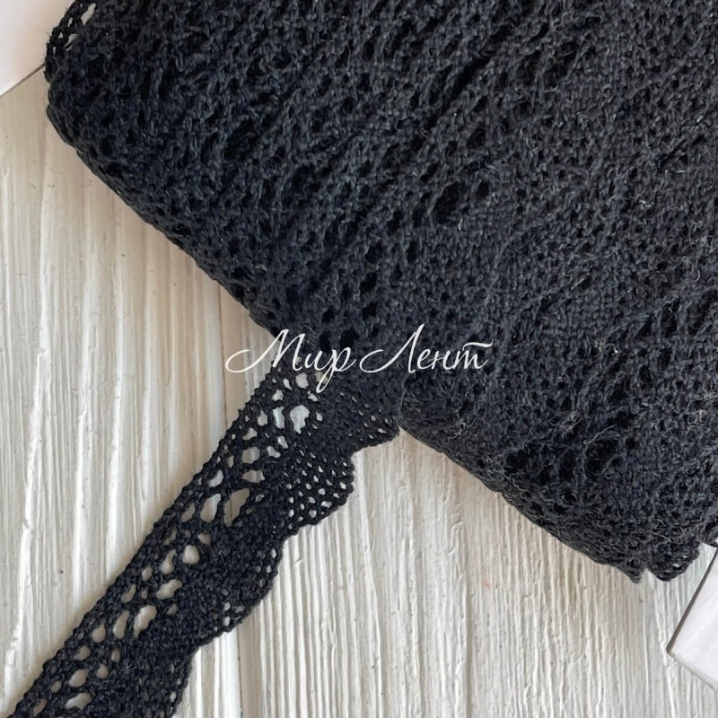 Кружево вязаное Айрис (D03602), 2 см, черное, рулон 45 м