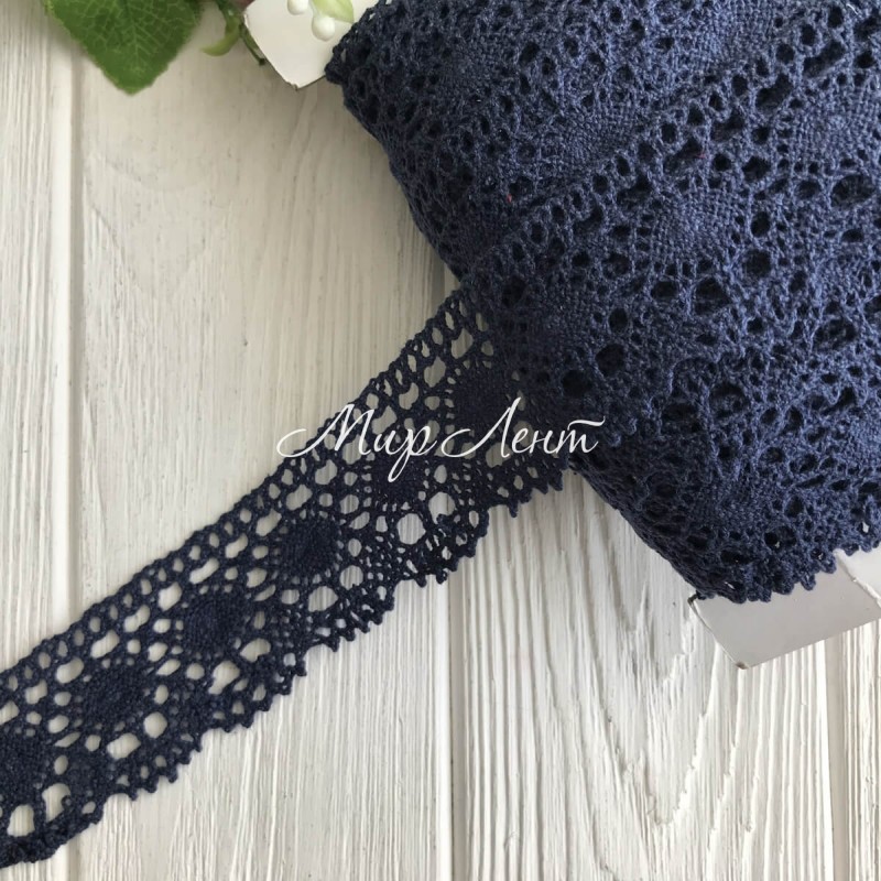 Кружево вязаное цветное (№ 1559), сапфировый, 4 см, рулон 45 м