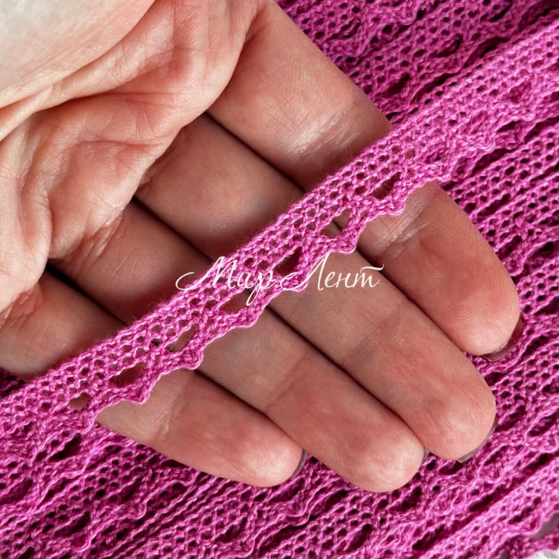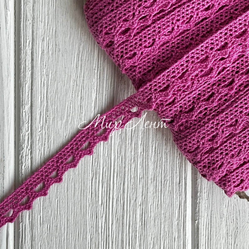 Кружево вязаное (D03401), розово-малиновое, 11 мм, рулон 45 м