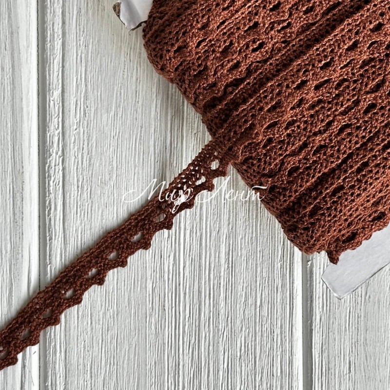 Кружево вязаное (D03401), светло-шоколадное, 11 мм, рулон 45 м