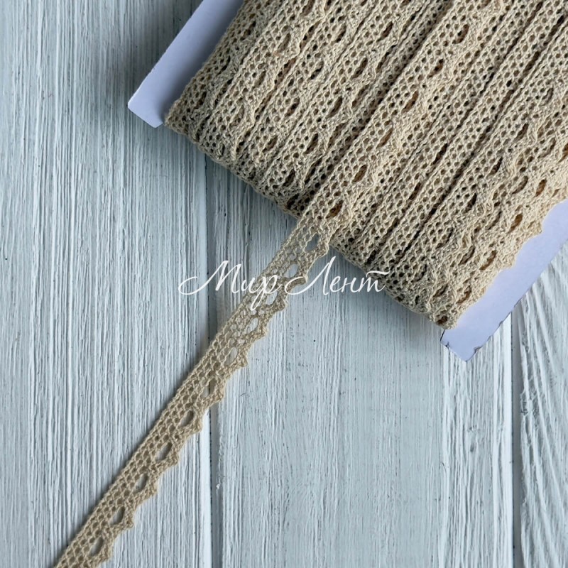 Кружево вязаное (D03401), светло-бежевое, 11 мм, рулон 45 м