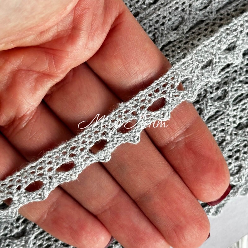 Кружево вязаное (D03401), светло-серое, 11 мм, рулон 45 м