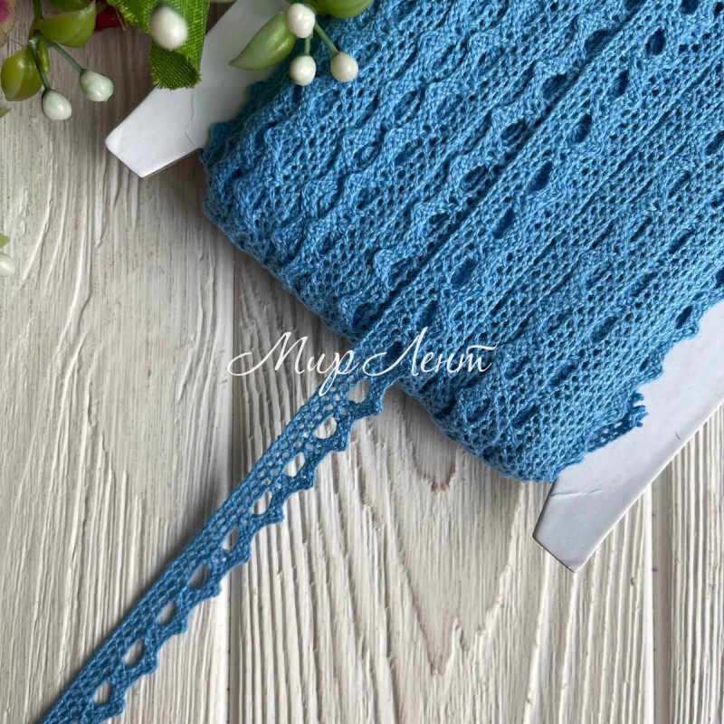Кружево вязаное (D03401), светло-синее, 11 мм, рулон 45 м