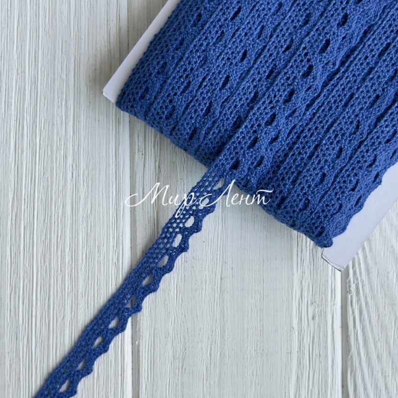 Кружево вязаное (D03401), темно-синее, 11 мм, рулон 45 м