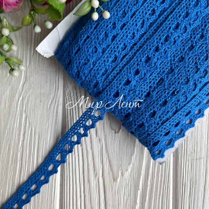Кружево вязаное (D03401), ярко-темно-синее, 11 мм, рулон 45 м