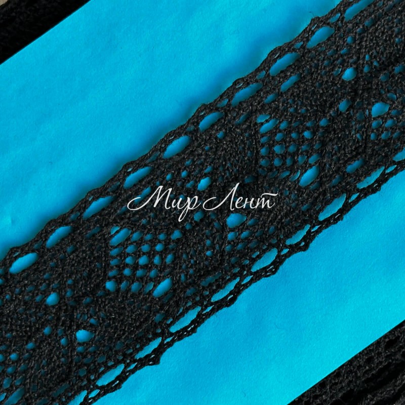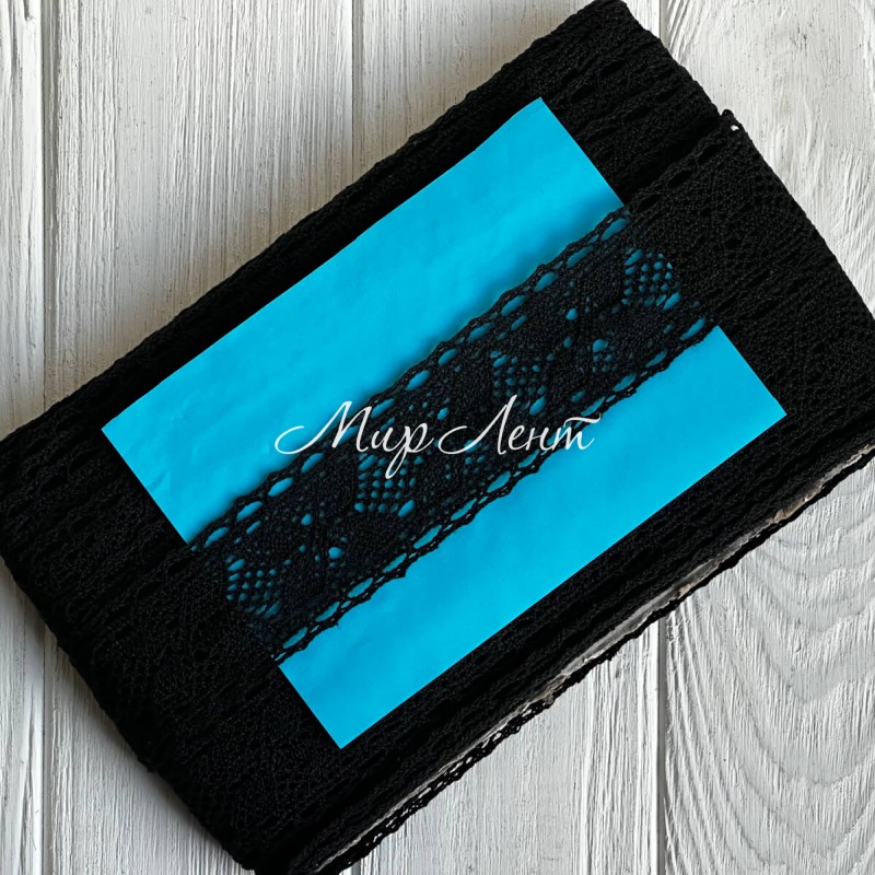 Кружево вязаное (D30087 / 5010В), 4 см, черное, рулон 13 м