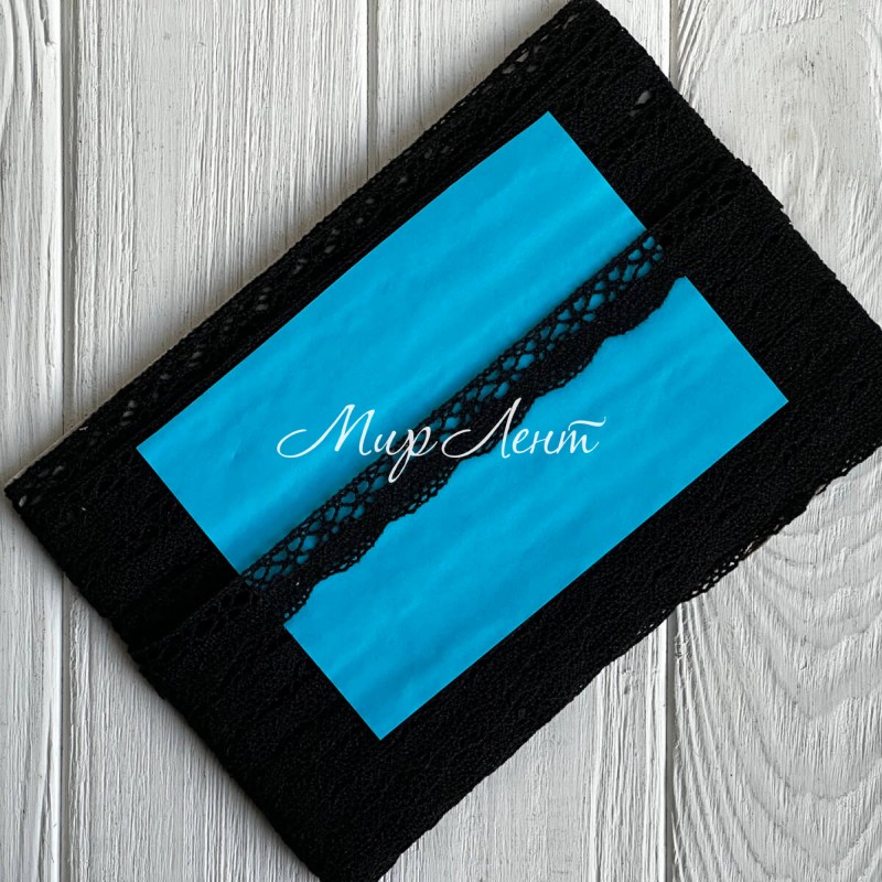 Кружево вязаное (D30097 / А017), 2 см, черное, рулон 13 м