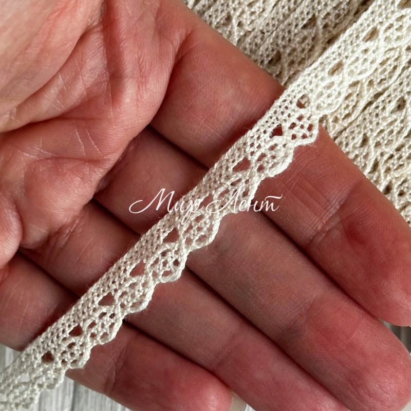 Кружево вязаное Эбигейл (D03501), 1 см, молочное, рулон 45 м
