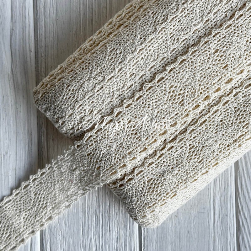 Кружево вязаное Камилла (D30156), 4 см, молочное, рулон 45 м