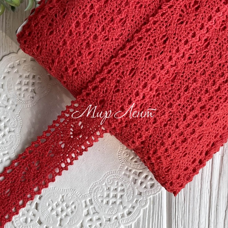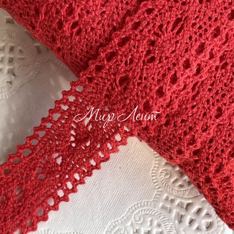 Кружево вязаное Лори (D30031), 2,8 см, красное, рулон 45 м
