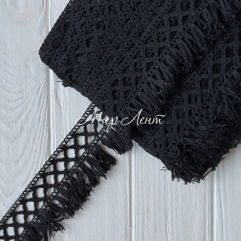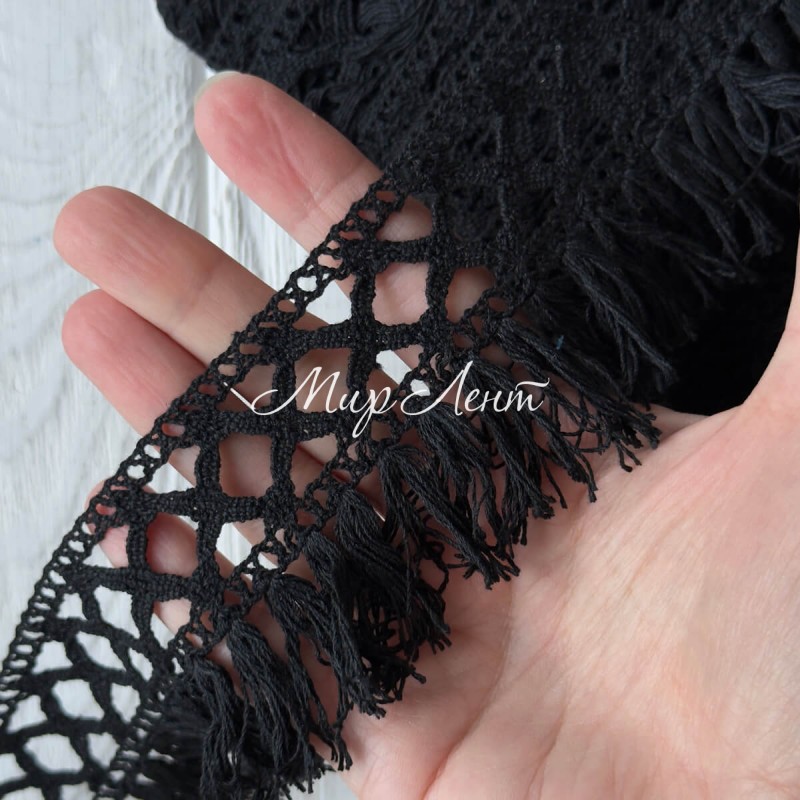 Кружево вязаное с бахрамой (D30260), черное, 5,7 см, рулон 23 м