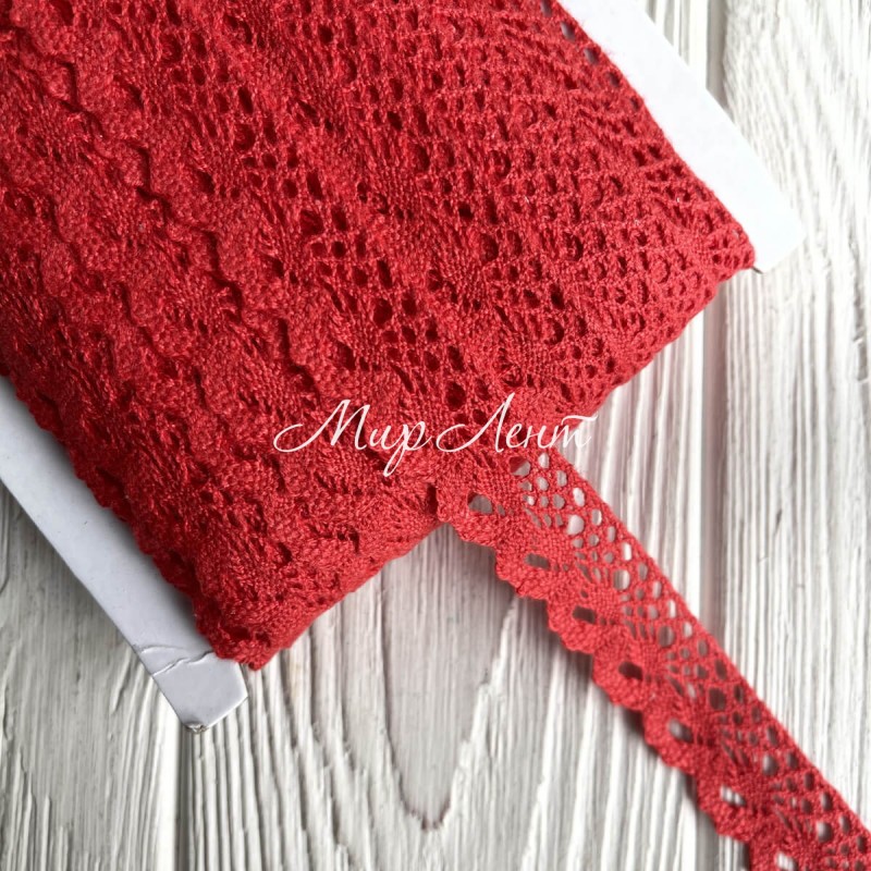 Кружево вязаное Санта (D030050), 2 см, красное, рулон 45 м