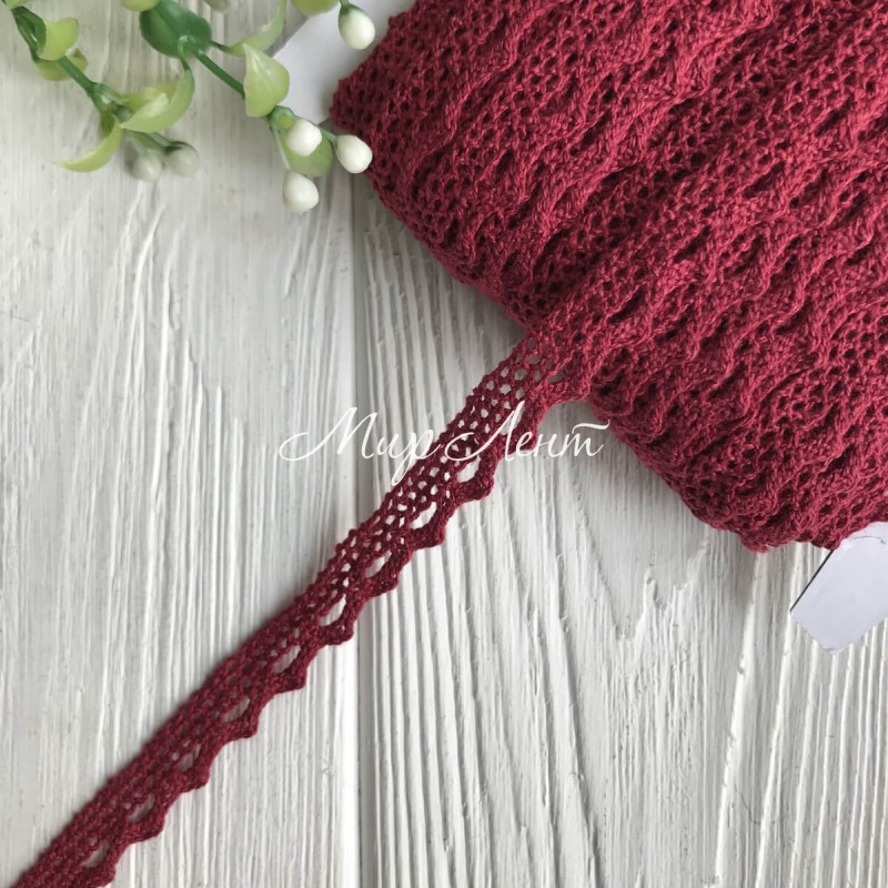 Кружево вязаное (D03401), бургунди, 11 мм, рулон 45 м