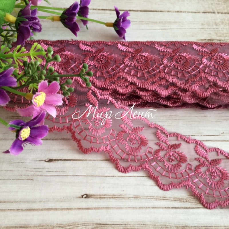 Кружево яблочко, 4,5 см, баклажановый, рулон 9 м