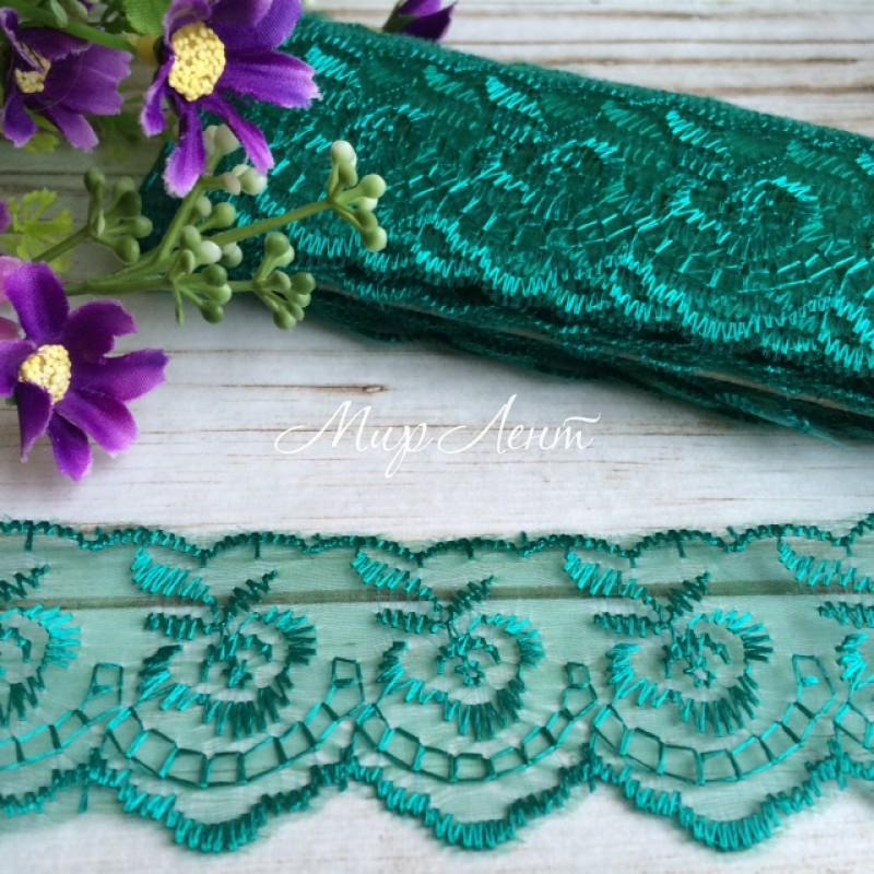 Кружево яблочко, 4,5 см, изумрудный, рулон 9 м