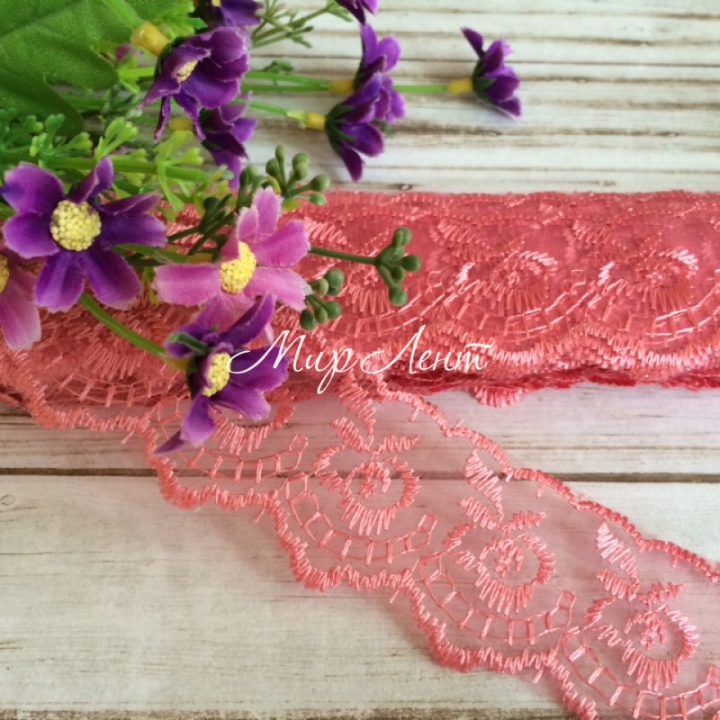 Кружево яблочко, 4,5 см, коралловый, рулон 9 м