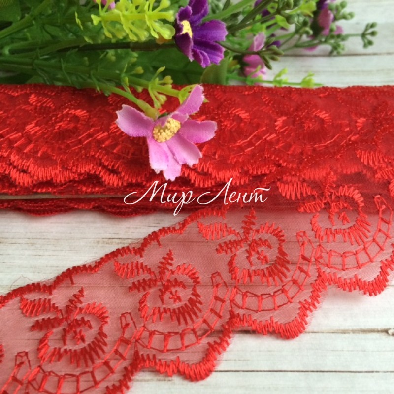 Кружево яблочко, 4,5 см, красное, рулон 9 м