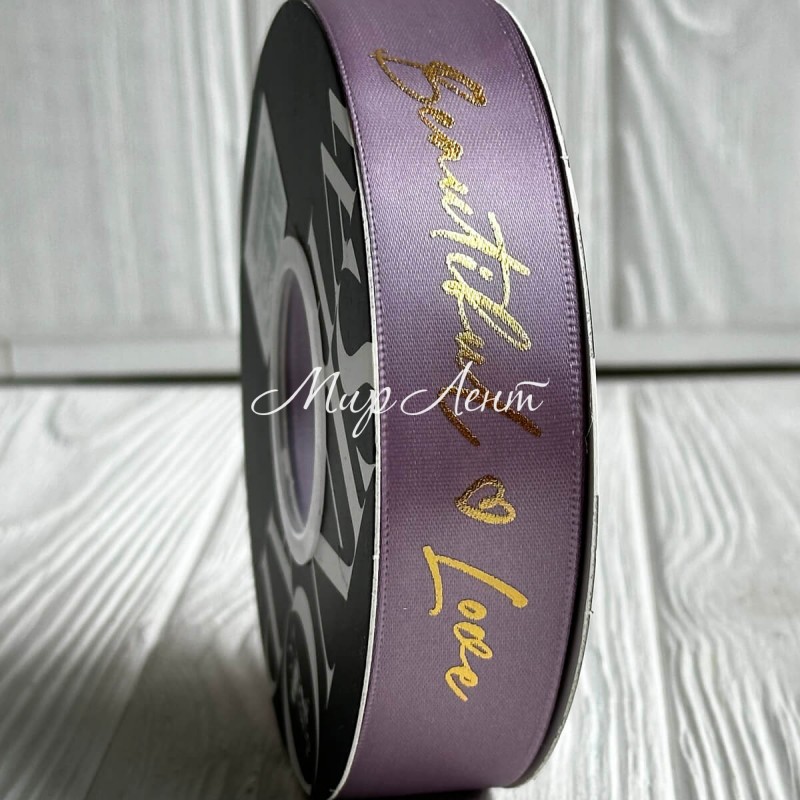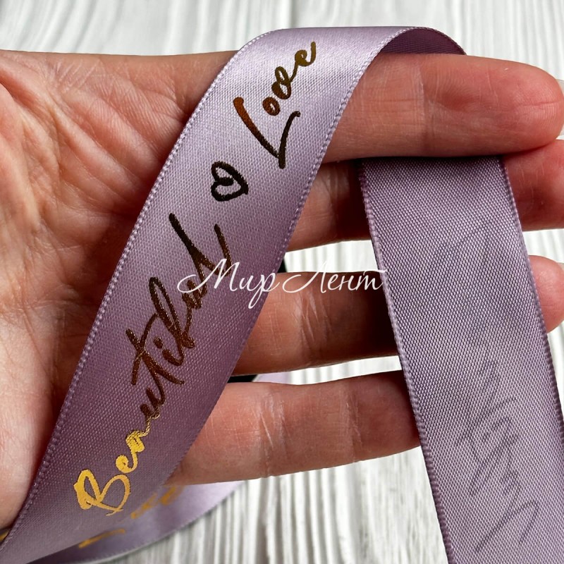 Лента атласная "Beautiful love", 2,5 см, лавандовая, рулон 30 м