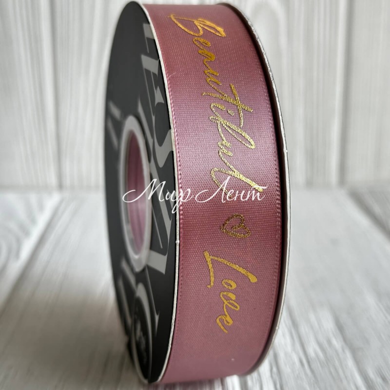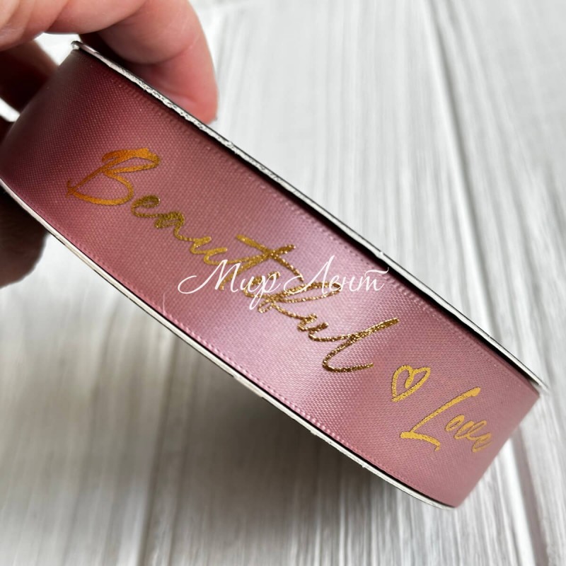 Лента атласная "Beautiful love", 2,5 см, пудровая, рулон 30 м