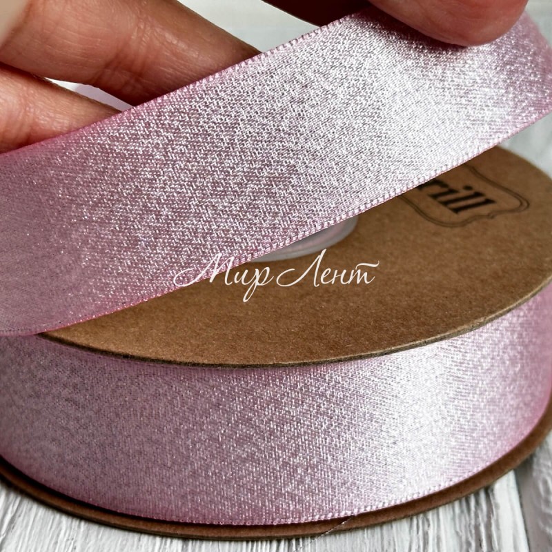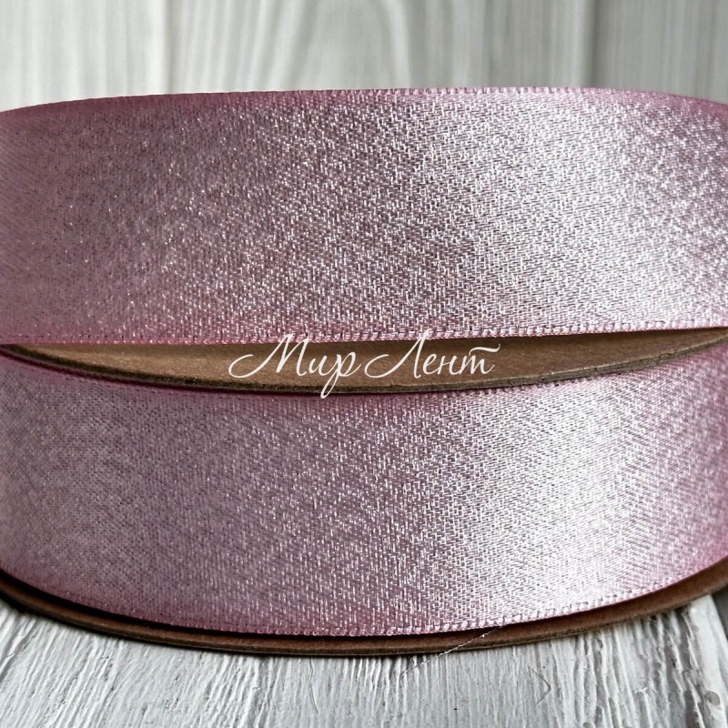 Лента атласная двусторонняя с серебряным напылением, 2,5 см, светло-розовый, рулон 18 м