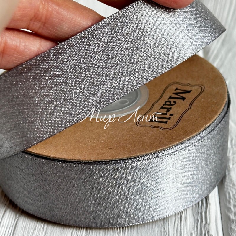 Лента атласная двусторонняя с серебряным напылением, 2,5 см, серый, рулон 18 м