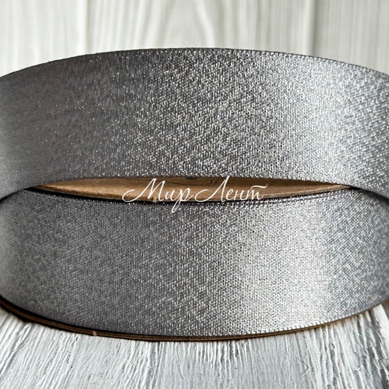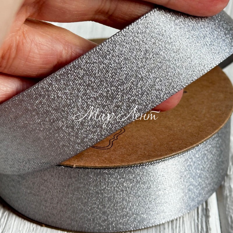 Лента атласная двусторонняя с серебряным напылением, 2,5 см, серебряный, рулон 18 м