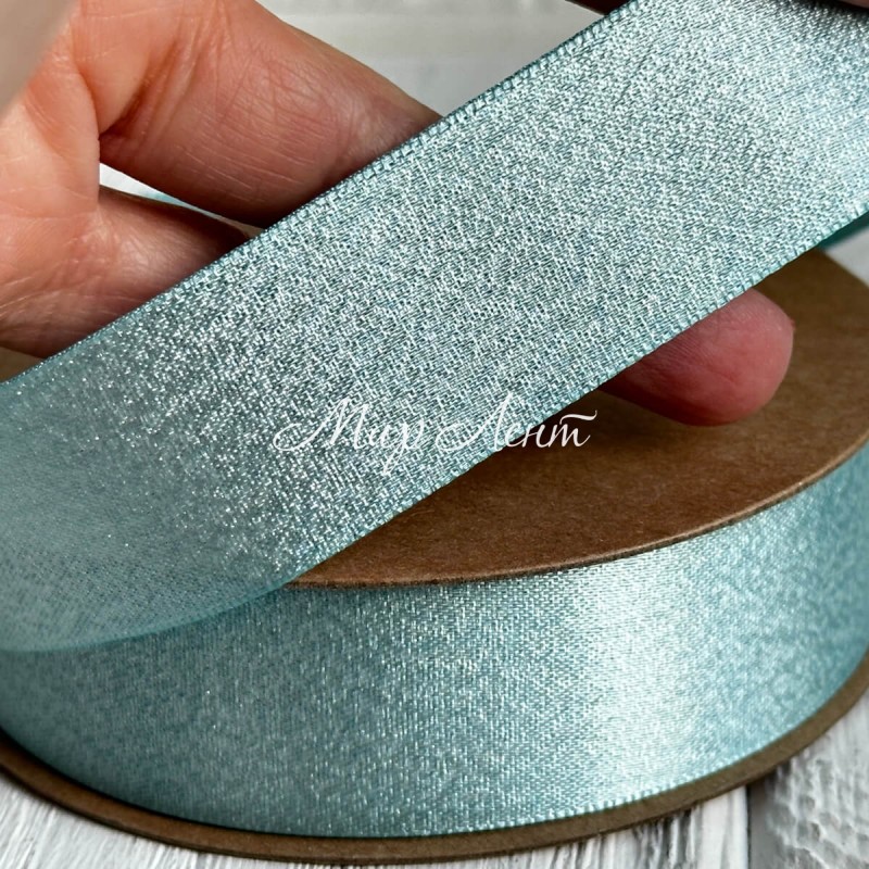 Лента атласная двусторонняя с серебряным напылением, 2,5 см, аквамарин, рулон 18 м