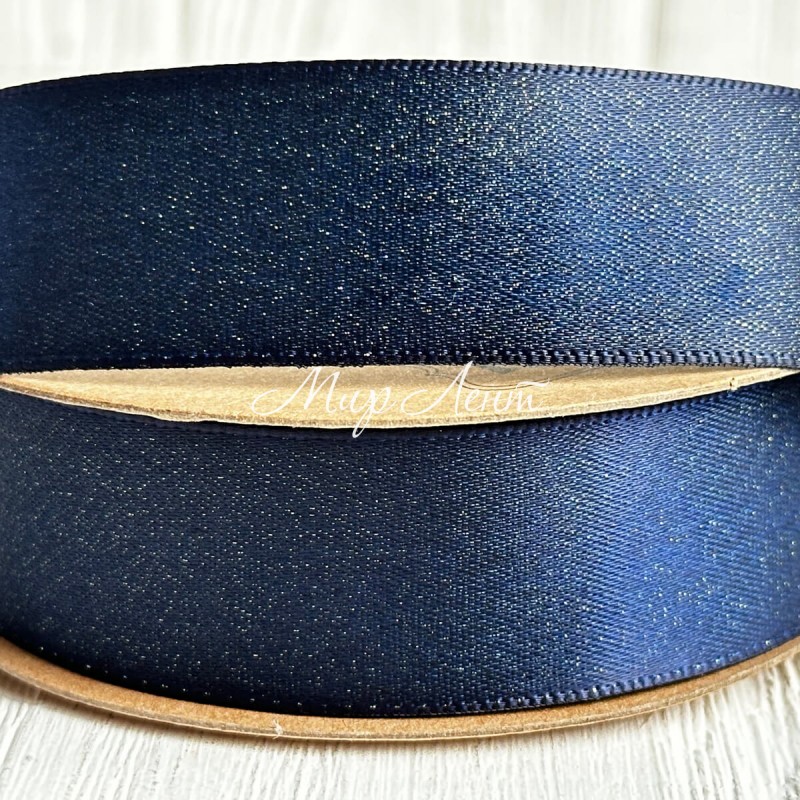 Лента атласная двусторонняя с золотым напылением, 2,5 см, сапфировый, рулон 18 м