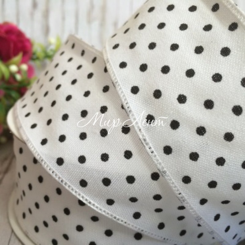 Лента джинс горох, 4 см, бело-черный, рулон 17,5 м