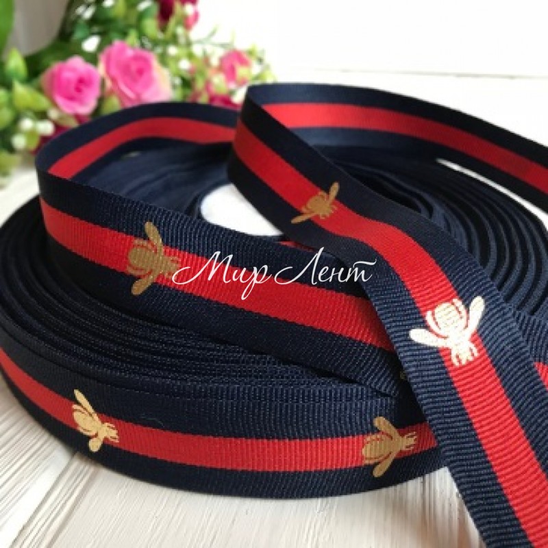 Лента Gucci с мухой, 2,3 см, сине-красная полоса, рулон 50 м