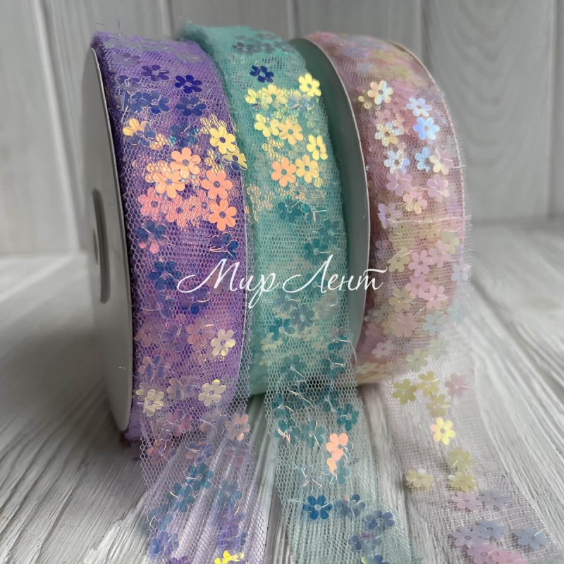 Лента из фатина з паетками, 2,5 см, мятный, рулон 23 м