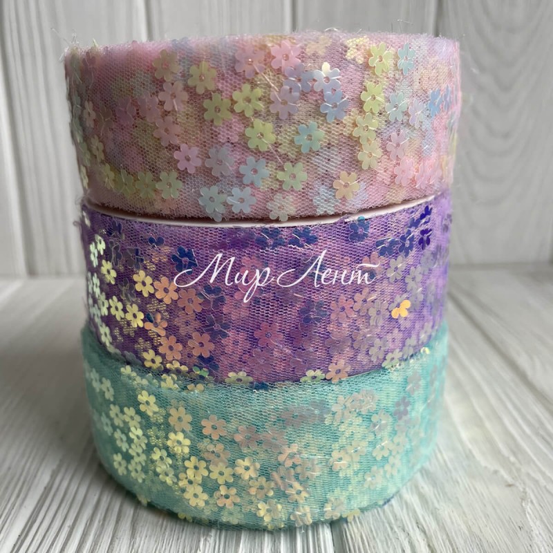Лента из фатина з паетками, 4 см, мятный, рулон 23 м