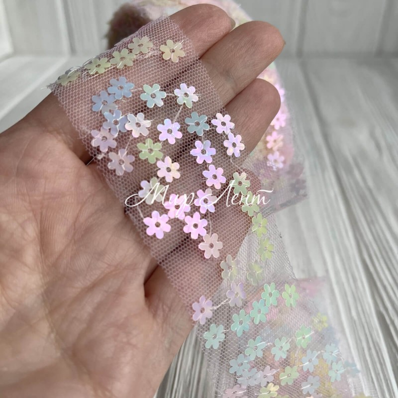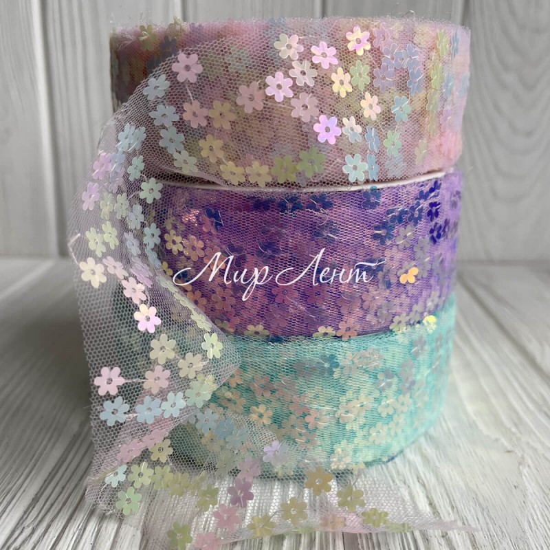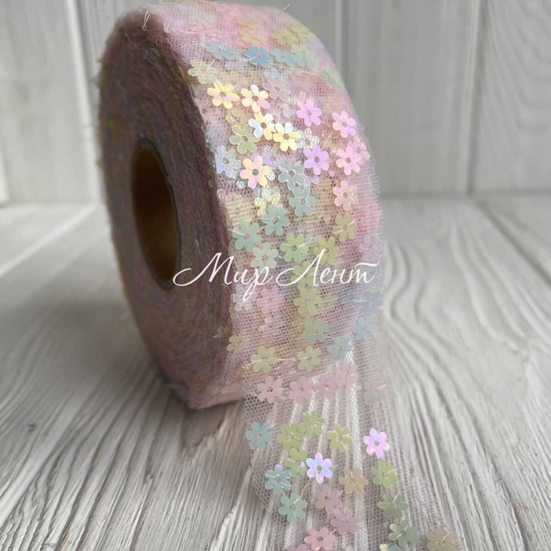 Лента из фатина з паетками, 4 см, пастельный микс, рулон 23 м