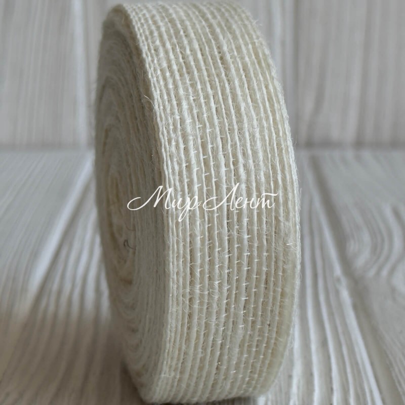 Лента мешковина леска (однотонная), 2,5 см, айвори, рулон 10 м