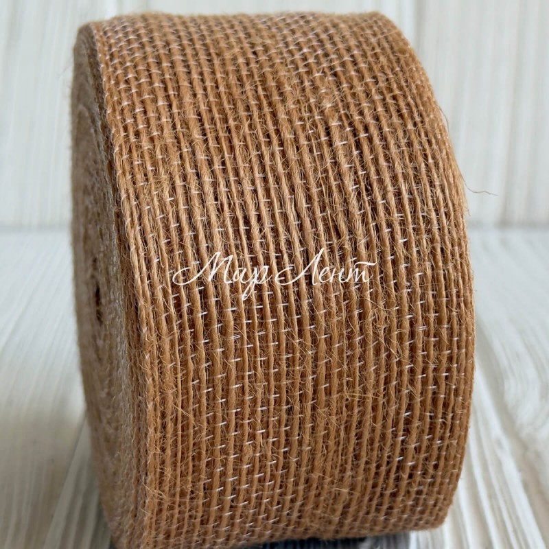Лента мешковина леска (однотонная), 4 см, мокко, рулон 10 м