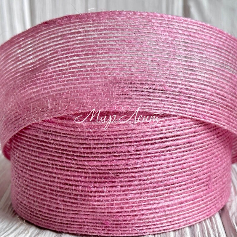 Лента мешковина леска (однотонная), 4 см, розовая, рулон 9 м
