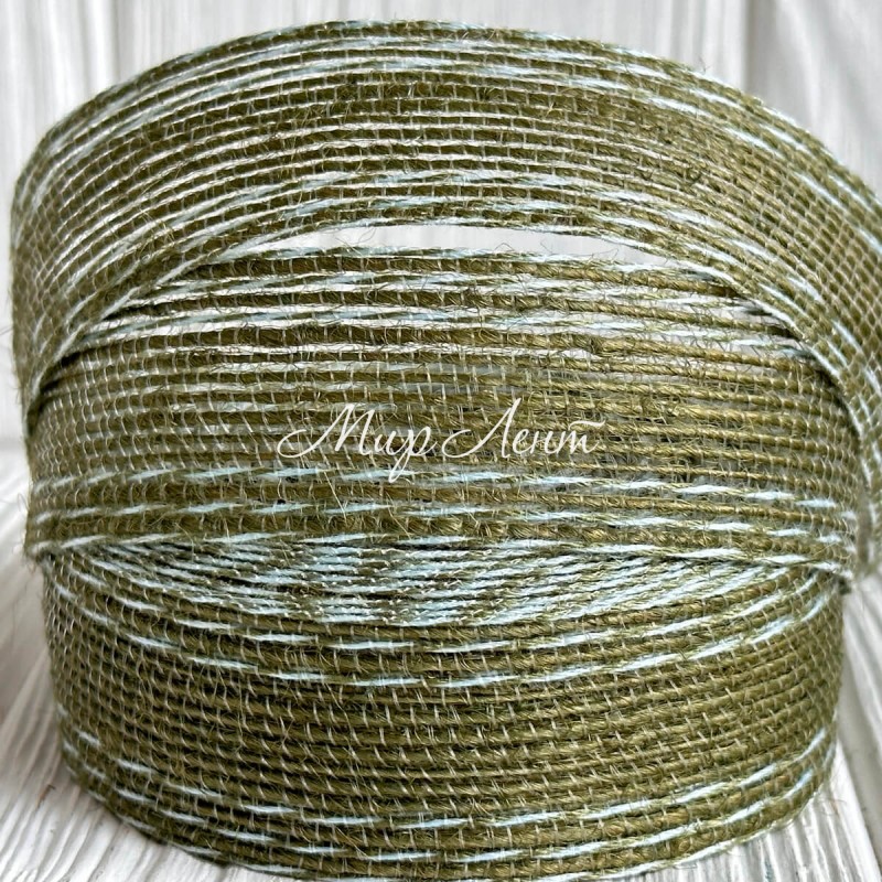 Лента мешковина леска (с белой ниткой), 2,5 см, хаки, рулон 9 м