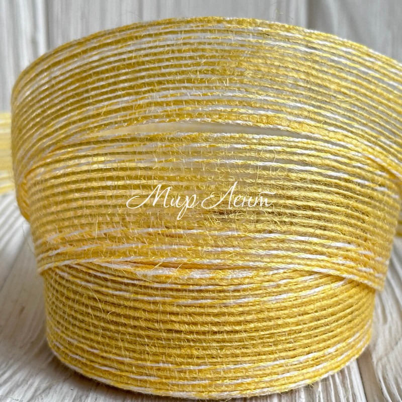 Лента мешковина леска (с белой ниткой), 2,5 см, желтая, рулон 9 м