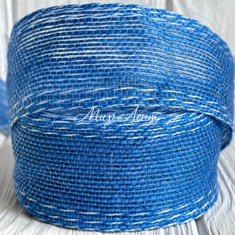 Лента мешковина леска (с белой ниткой), 4 см, синяя, рулон 9 м
