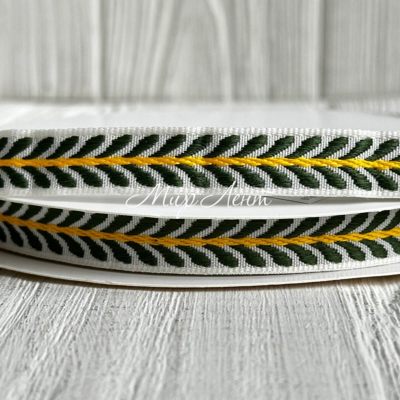 Лента с вышивкой (D19810), 1,2 см, черно-зелено-желтая, рулон 23 м
