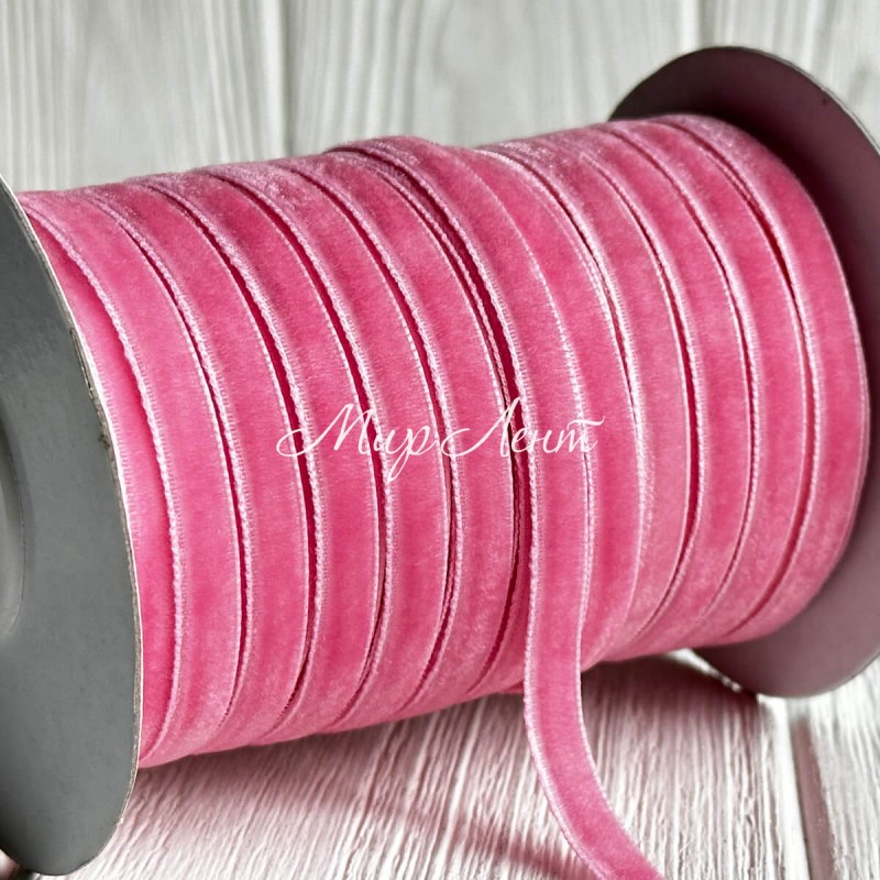 Лента велюр, 0,6 см, розовый, рулон 45 м