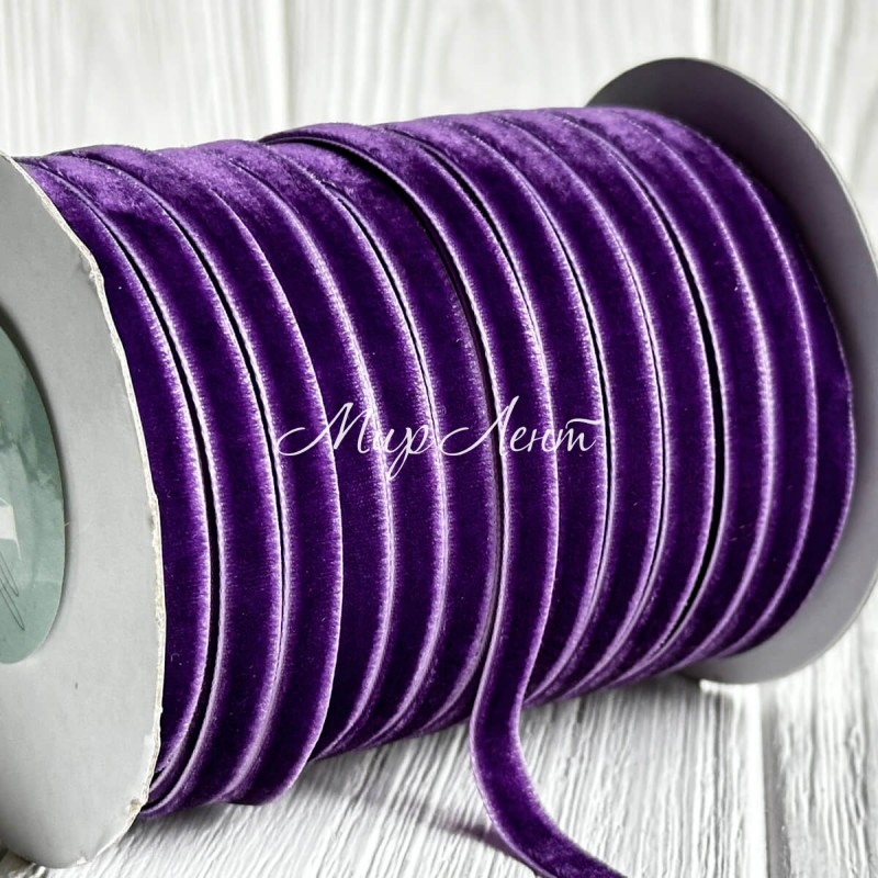 Лента велюр, 0,6 см, темно-фиолетовый, рулон 45 м
