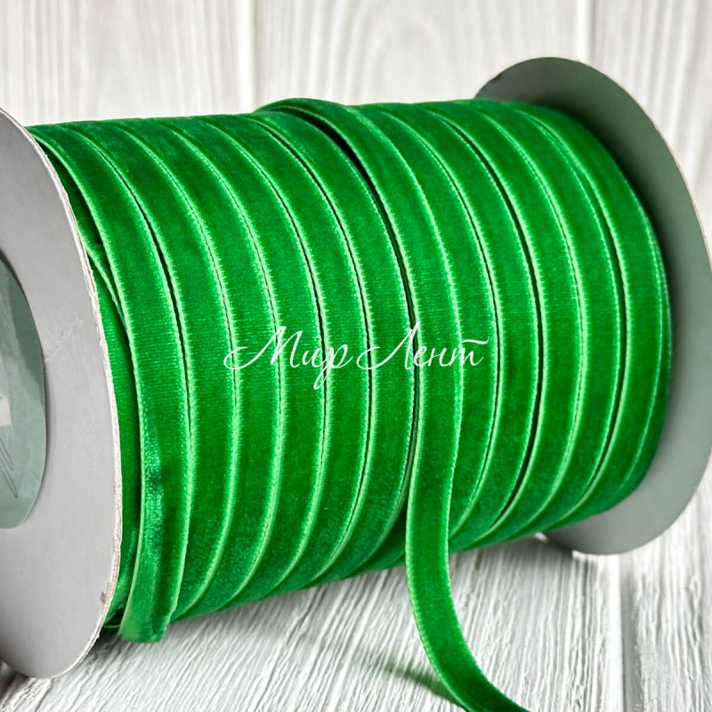 Лента велюр, 0,6 см, зеленый, рулон 45 м