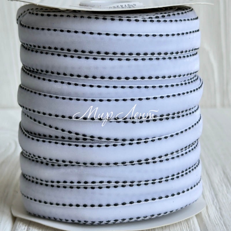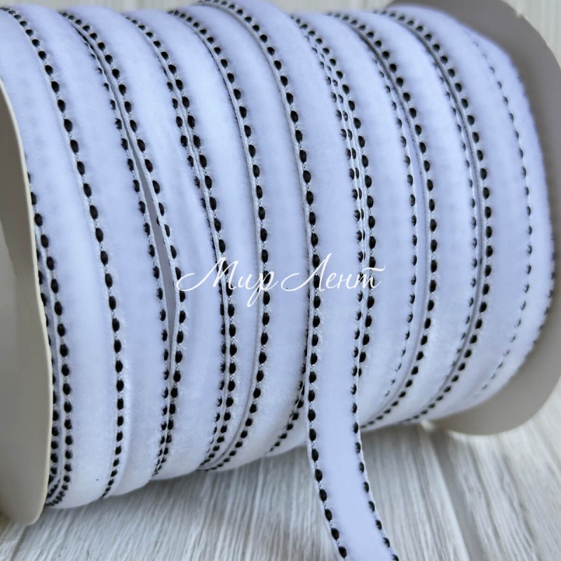 Лента велюр с кантом, 1 см, белая, рулон 45 м